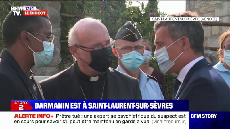 Gérald Darmanin est arrivé à Saint-Laurent-Sur-Sèvres, en Vendée, après l'assassinat du père Olivier Maire ce lundi matin.