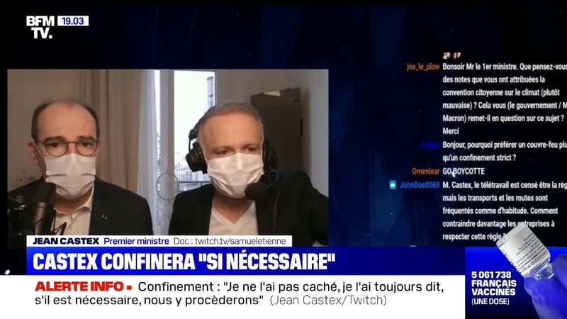 Le Premier ministre Jean Castex était ce dimanche invité de Samuel Étienne sur Twitch. Interrogé par les spectateurs sur l'éventualité d'un reconfinement, il a affirmé qu'il y procèdera "s'il est nécessaire". "Faisons tout ce qui est en notre pouvoir pour éviter ce confinement", a-t-il tout de même tempéré.