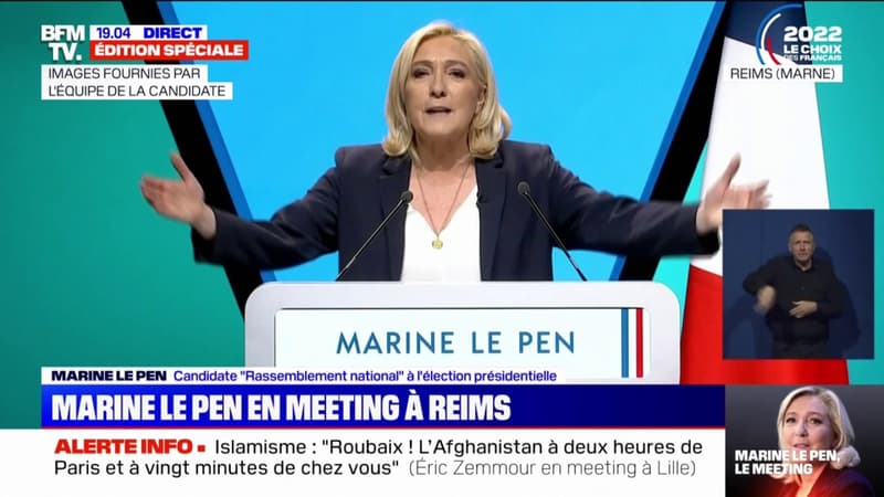 Ce samedi, Marine Le Pen, candidate Rassemblement national à l'élection présidentielle 2022, a tenu un meeting à Reims.