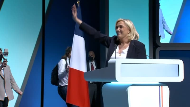 Face à 4000 militants, la candidate du Rassemblement national a longuement pris pour cible le président de la République avant d'ouvrir une surprenante parenthèse plus intimiste.